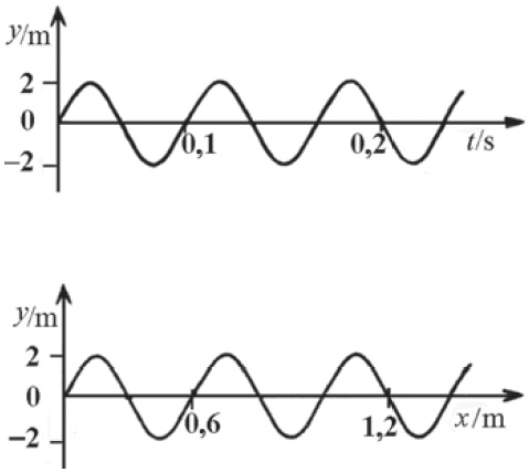 Valna duljina i period longitudinalnog vala čiji su y, x – graf i y,t – graf na slici su: