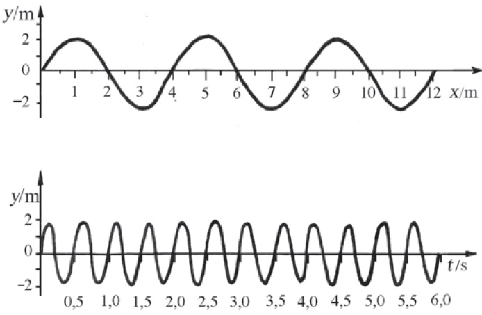 Promotri sliku. Period vala, frekvencija, valna duljina i amplituda vala iznose:
