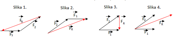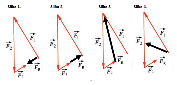 Slika koja prikazuje ispravan smjer, orjentaciju i iznos rezultantne sile na tijelo je: (odaberi dva točna odgovora)
